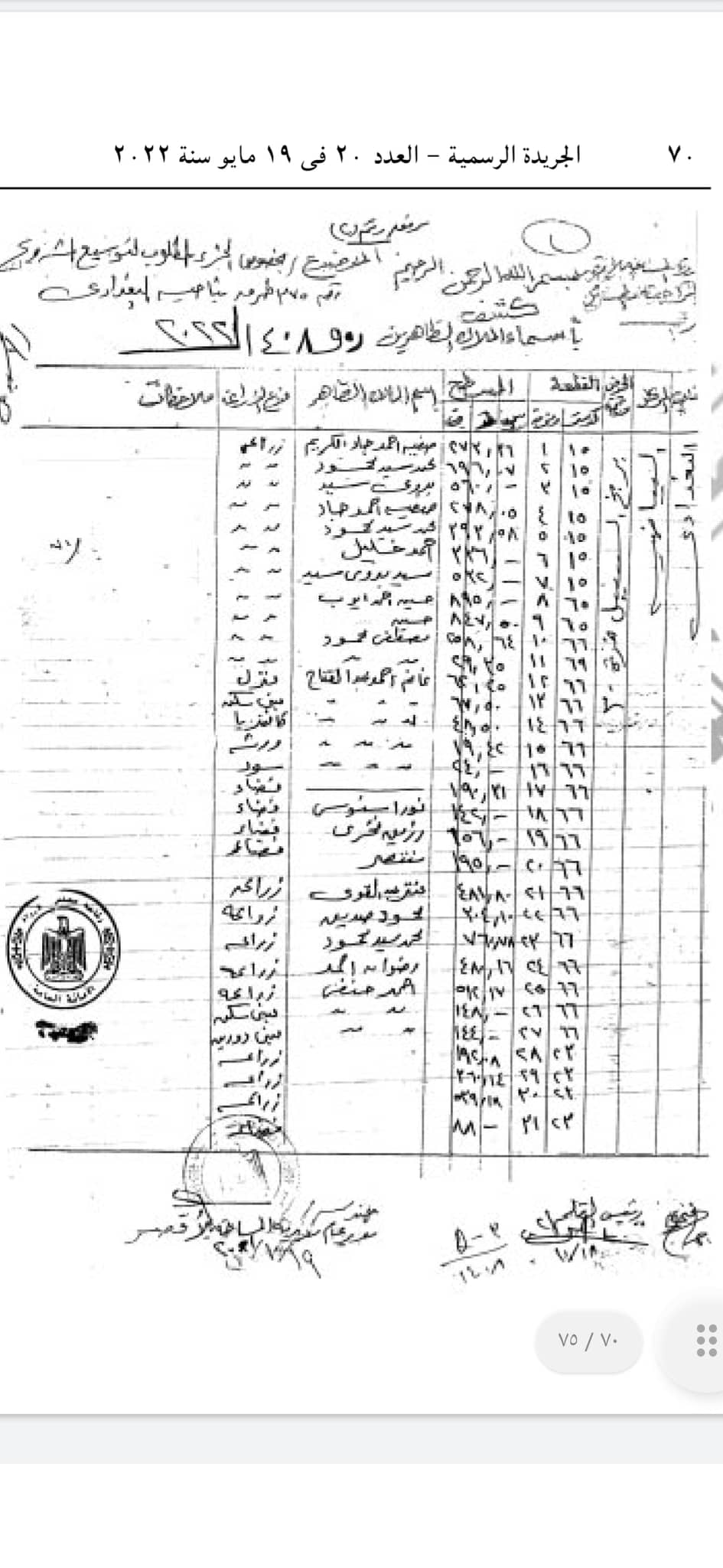 وينص القرار على أن يُستولي بطريق التنفيذ المباشر على الأراضي اللازمة لتنفيذ المشروع والبالغ عددها 76 قطعة أرض وعقار بناحية البياضية.