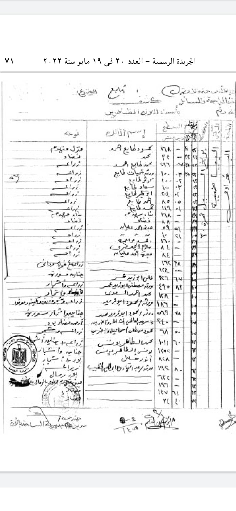 وإلى كشوف المُلاّك :-