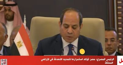 وأشار الرئيس السيسي: "لقد تابعنا بالحزن والألم، تصاعد حدة بعض الأزمات العربية، خلال الفترة الماضية، لا سيما ما ينتج عن أعمال التصعيد غير المسئولة، من قبل إسرائيل في الأراضي الفلسطينية، وآخرها ما شهده قطاع غزة وبينما تؤكد مصر، استمرار جهودها لتثبيت التهدئة، إلا أننا نحذر، من أن استمرار إدارة الصراع، عسكريا وأمنيا، سيؤدى إلى عواقب وخيمة، على الشعبين الفلسطيني والإسرائيلي على حد سواء".