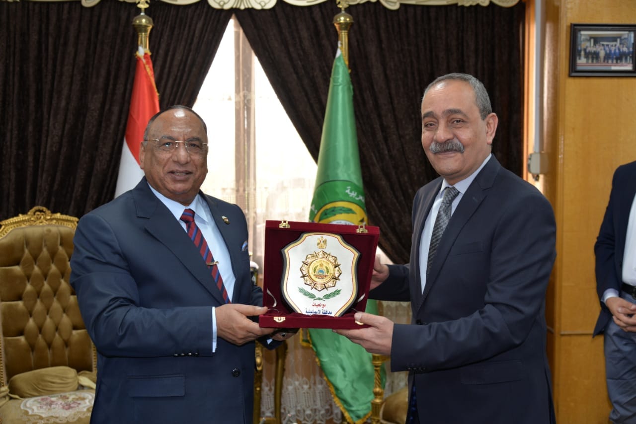 وأهدى بشارة، درع المحافظة لرئيس هيئة قضايا الدولة الذي أهدى درع الهيئة لمحافظ الإسماعيلية.