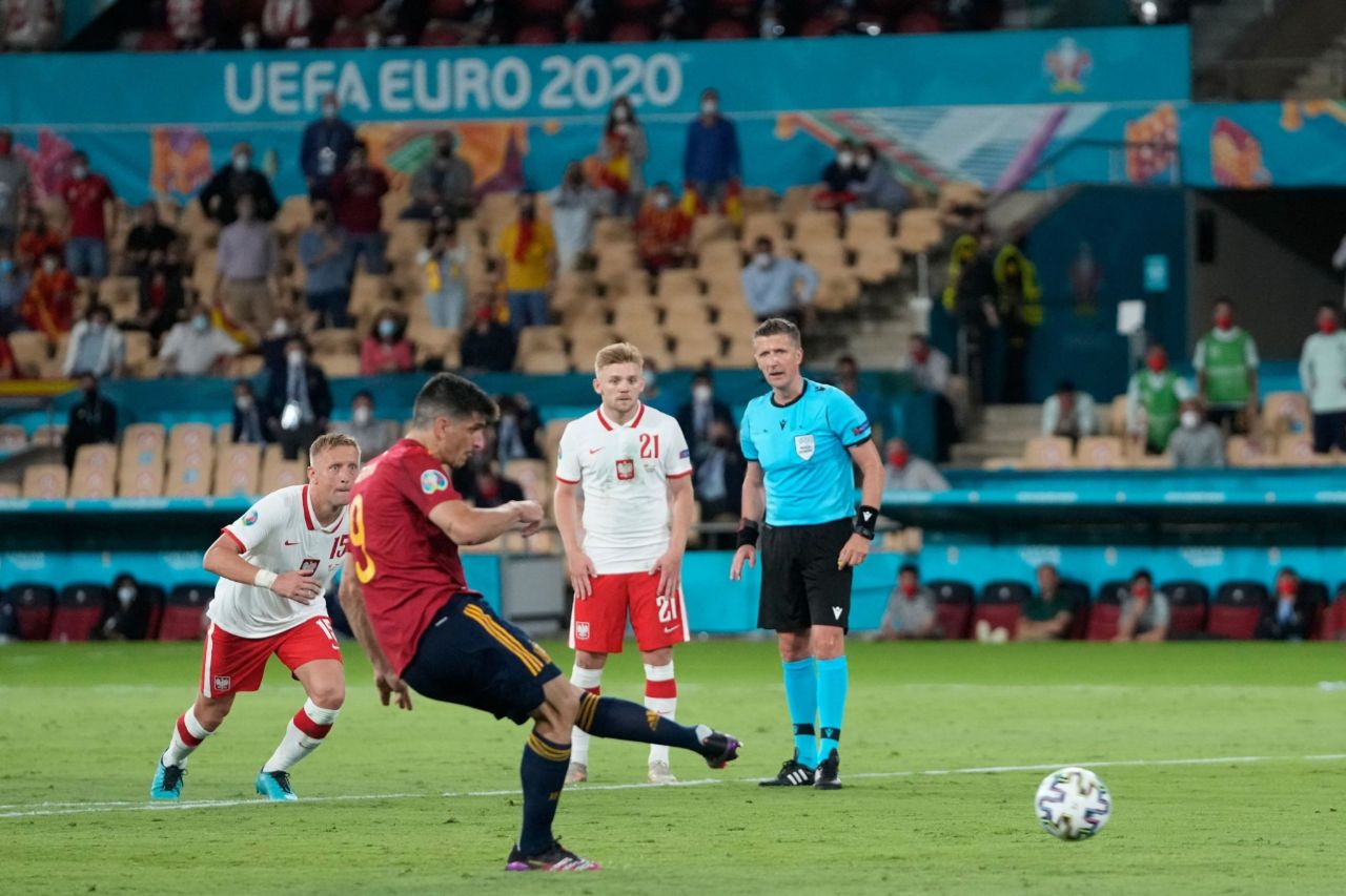 وتقدم الفارو موراتا بهدف للمنتخب الإسباني في الدقيقة 26 لكن القناص البولندي روبرت ليفاندوفسكي أدرك التعادل لبلاده في الدقيقة 54 بضربة رأس رائعة.
