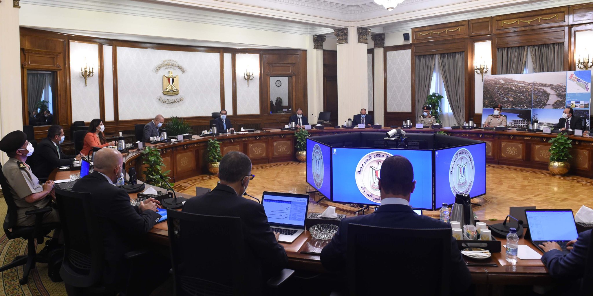 عقد الدكتور مصطفى مدبولي، رئيس مجلس الوزراء، اجتماعاً، اليوم؛ لاستعراض المقترحات الخاصة بإعداد حزمة حماية اجتماعية استثنائية، تنفيذاً لتوجيهات الرئيس عبدالفتاح السيسي، رئيس الجمهورية، وذلك بحضور الدكتور على المصيلحي، وزير التموين والتجارة الداخلية، والدكتور محمد معيط، وزير المالية، والسيدة/ نيفين القباج، وزيرة التضامن الاجتماعي، والسيدة/ مي فريد، معاون وزير المالية للعدالة الاقتصادية، ومسئولى الجهات المعنية.