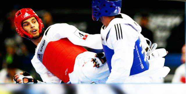 وفرض التعادل نفسه في الجولات الثلاث الرسمية 8-8، فاحتكم اللاعبان الى جولة فاصلة تحسم لصالح اللاعب الذي يسبق منافسه الى تسجيل نقطة (او اكثر بحسب الضربات)، فكانت الكلمة الاخيرة للتونسي الذي وجه ضربة قوية الى رأس منافسه فنال 3 نقاط وبلغ دور ربع النهائي.