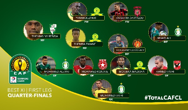 الوسط: فوسيني كوليبالي (الترجي) – مؤيد اللافي (أهلي طرابلس الليبي) – ثيمبا زواني (صن داونز الجنوب أفريقي) – توماس نيريندا (فيرو فيارو الموزمبيقي)