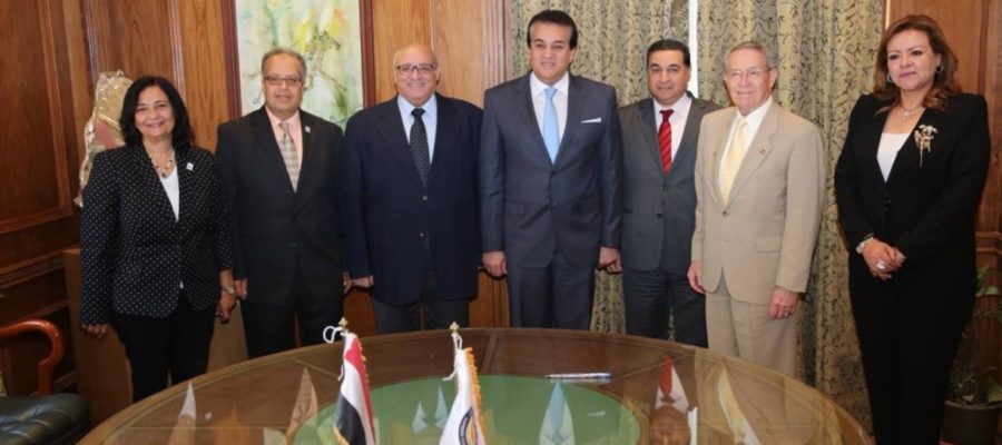 وشملت الجامعات الحكومية الموقعة، كل من جامعات حلوان، وسوهاج، والزقازيق، وجنوب الوادي، والإسكندرية، وقناة السويس، والمنوفية، ووقع من الجانب الامريكي الدكتور جون لارسون رئيس جامعة أوشن الأمريكية.