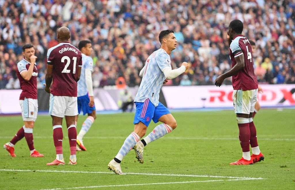 وسجل رونالدو هدف التعادل لفريقه أمام وست هام يونايتد في المباراة التي تجمع الفريقين اليوم، الأحد، ضمن منافسات الجولة الخامسة من الدوري الإنجليزي الممتاز «البريميرليج»، على ملعب ستاد لندن الأولمبي، معقل وست هام.