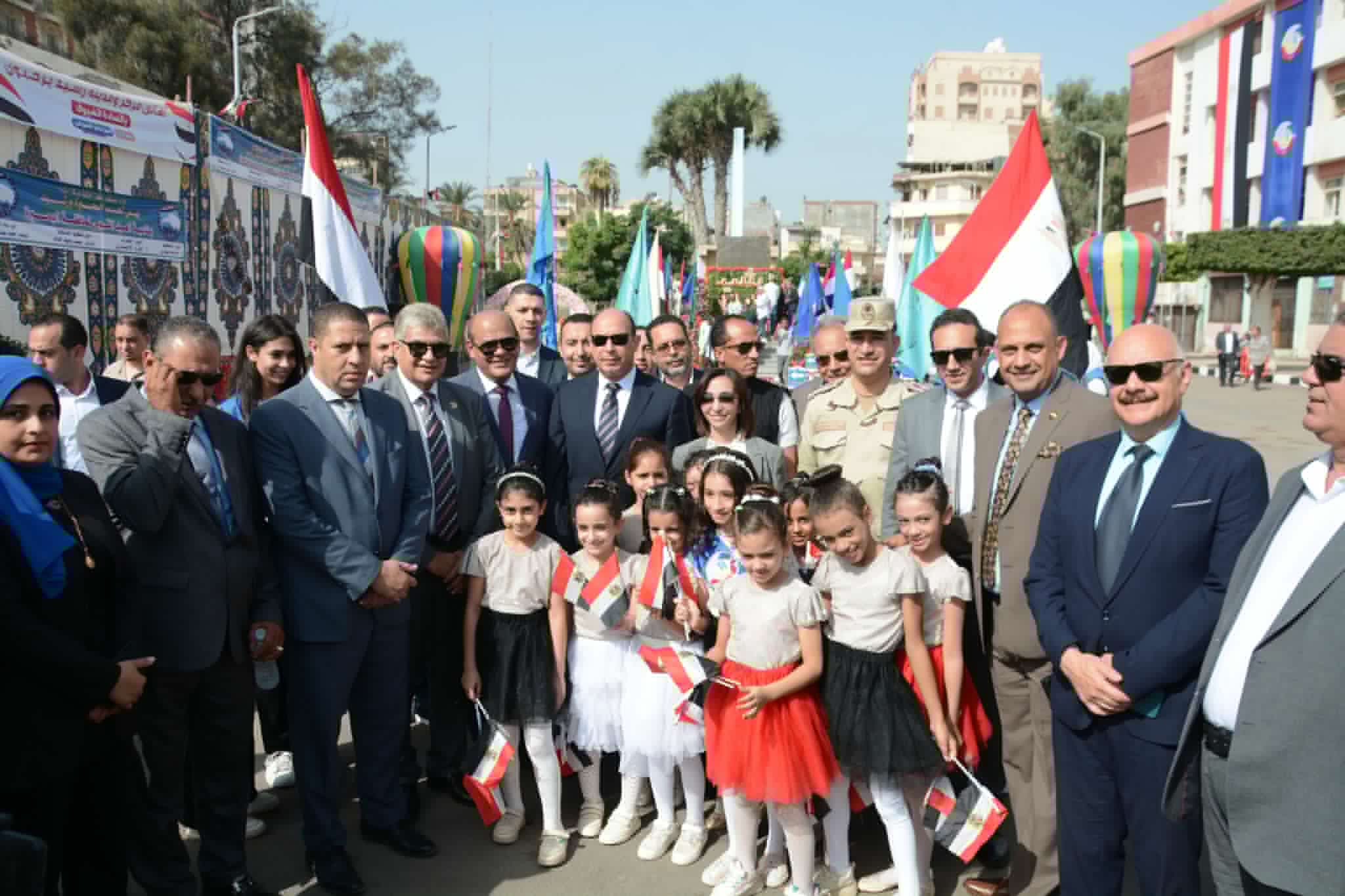 وبدأت مراسم الاحتفال بإيقاد الشعلة، ثم التوجه إلى المنصة الرئيسية، حيث تم عزف السلام الجمهوري وتلاوة آيات من القرآن الكريم،أعقب ذلك طابور عرض عربات الزهور للوحدات المحلية، وسط أجواء مفعمة بالوطنية والفخر.