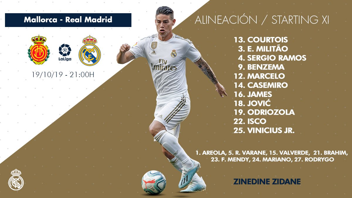 أعلن الفرنسي زين الدين زيدان، المدير الفني لريال مدريد عن تشكيل فريقه لمواجهة ريال ماريوكا، والتي ستُقام مساء اليوم السبت على ملعب إيبيروستار ضمن منافسات الجولة التاسعة من الدوري الإسباني.