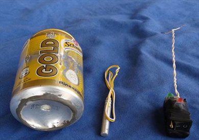 أما الأسلاك الظاهرة في منتصف الصورة، فربما تكون توصيلات كهربائية لكبسولة التفجير، أما المتبقي من الدائرة، المخبأ أسفل الشريط الأسود، يمكن أن يحتوي على بطاريات صغيرة والإلكترونيات الضرورية لإرسال شحنة كهربائية لكبسولة التفجير في اللحظة المرجوة، ومن ثم ستفجر كبسولة التفجير شحنة ناسفة داخل العبوة الغازية الألومنيوم.