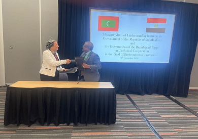 وقعت الدكتورة ياسمين فؤاد وزيرة البيئة، ووزير الدولة للبيئة وتغير المناخ والتكنولوجيا لدولة المالديف الدكتور عبد الله ناصر، مذكرة تفاهم للتعاون المشترك بين البلدين في مجال حماية البيئة، وتعزيز التعاون في مجال تحقيق التنمية المستدامة وصون الموارد الطبيعية حفاظا على حقوق الأجيال الحالية والقادمة.