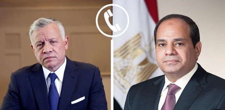 وأعرب الرئيس السيسي، عن الشكر والتقدير لأخيه الملك عبد الله الثاني على هذه اللفتة الأخوية، مثمناً ما تتسم به العلاقات بين مصر والأردن من قوة ورسوخ، على المستويين الرسمي والشعبي، ومؤكداً مواصلة مصر العمل على التسوية العادلة والشاملة للقضية الفلسطينية.