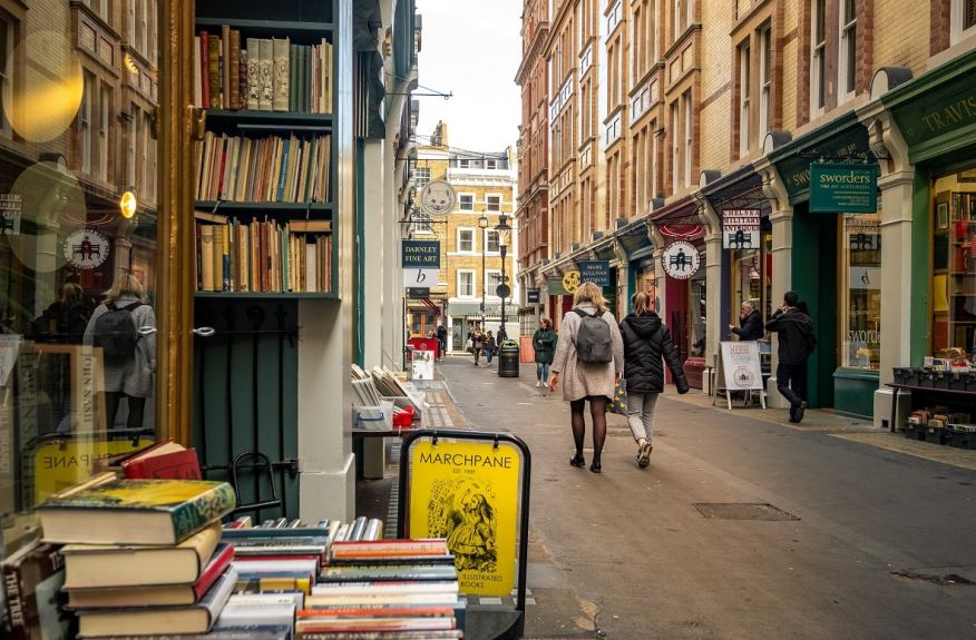 هو مكان مشهور لعشاق الكتب، خاصة لمحبي الكتب المستعملة والقديمة، لأنه يضم العديد من المكتبات المتخصصة مثل Any Amount of Books، وتشتهر المنطقة بوجود مكتبة Foyles الضخمة، وشارع Cecil Court الفرعي الذي يطلق عليه "صف بائعي الكتب الجديد" لتركيزه على الكتب النادرة، كما أن المنطقة مستوحاة من رواية 84، شارع تشارينج كروس، وتتمتع بجو أدبي فريد يجمع بين الجديد والمستعمل، وهو أيضا سوق مكرّس للمكتبات المستقلة والقديمة ويعد مقصد للصحفيين والباحثين، ويمثل الكتاب كصناعة ثقافية لا مجرد سلعة.