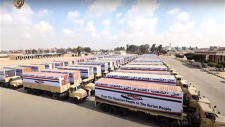 أرسلت مصر قافلة من المساعدات في إطار الدعم والتضامن المصري مع أبناء شعبي سوريا وتركيا في أعقاب الزلزال المدمر بكلتا الدولتين، استمرارا لدور مصر الفاعل تجاه الدول الشقيقة والصديقة وتنفيذا لتوجيهات الرئيس عبد الفتاح السيسي رئيس الجمهورية القائد الأعلى للقوات المسلحة.
