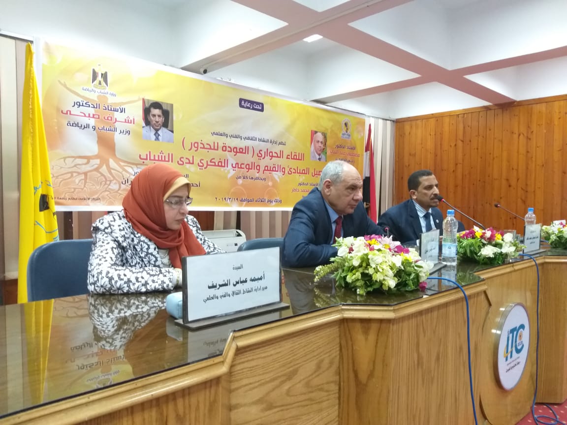 نظمت إدارة النشاط الثقافي بالإدارة العامة لرعاية الطلاب بجامعة المنيا ندوة بعنوان "العودة للجذور" وذلك في إطار سلسلة الندوات التي تنظمها جامعة المنيا بالتعاون مع وزارة الشباب والرياضة برعاية الدكتور أشرف صبحي، وزير الشباب والرياضة، والدكتور مصطفى عبد النبي عبد الرحمن، رئيس الجامعة؛ بهدف تأصيل وترسيخ القيم لدى طلاب الجامعة، وزيادة الوعي الفكري لديهم.
