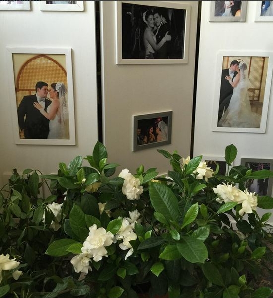 شام الذهبي أرفقت الصورة بتعليق أكدت فيه أن هذا الركن هو أجمل زاوية في منزلها حين قالت: "ورود الجاردينية عّم تزهر بالمكان الي حياتي فيها زهرت مع حب حياتي جوهر".