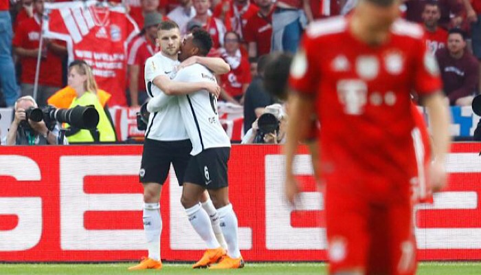 واجه بايرن ميونخ ، بطل الدوري الألماني لكرة القدم (بوندسليجا) ، نهاية مخيبة للأمال هذا الموسم بهزيمته أمام آينتراخت فرانكفورت 1 / 3 مساء السبت في نهائي كأس ألمانيا ، وذلك في آخر مباراة للفريق البافاري تحت قيادة المدير الفني المخضرم يوب هاينكس ، بينما يحتفل آينتراخت بأول لقب يحققه خلال 30 عاما.