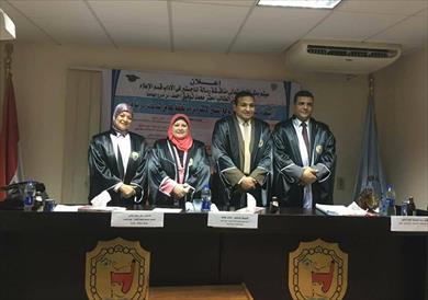 وتألفت لجنة المناقشة من الأستاذة الدكتورة حنان جنيد، أستاذ العلاقات العامة والإعلان بكلية الإعلام جامعة القاهرة، رئيسًا ومناقشًا، والدكتورة سحر محمد وهبي، الأستاذ المساعد بقسم الإعلام بكلية الآداب جامعة سوهاج مشرفا، والدكتورة فاطمة الزهراء صالح الأستاذ المساعد بكلية الآداب جامعة سوهاج، والدكتور عبد الباسط أحمد هاشم، الأستاذ المساعد بكلية الآداب جامعة سوهاج.