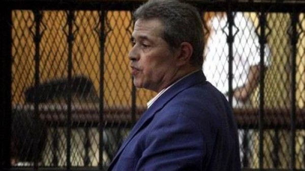ووصل «عكاشة» من محبسه بسجن طرة، بزي الحبس الاحتياطي، وتم إيداعه قفص الاتهام.