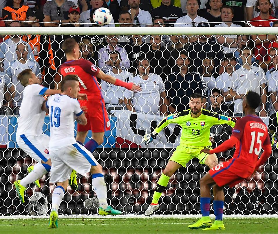 وضغط المنتخب الانجليزي بحثا عن هدف الفوز للبقاء في صدارة المجموعة، خاصة وان ويلز كانت متفوقة على روسيا بثلاثية نظيفة في المباراة الاخرى، لكن الدفاع السلوفاكي بقي متماسكا حتى النهاية برغم كرة لروني قرب القائم الايسر (83).