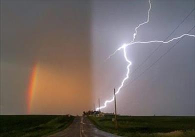 عادة ما يرتبط ظهور قوس القزح باليوم الربيعي المنعش، ونادرًا ما يمكن رؤيته بجوار العواصف الرعدية، ولكن هذا ما حدث لمصور أمريكي، بحسب الصورة التي نشرتها صحيفة «مترو» البريطانية.