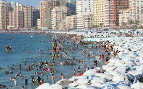 توافدت الأسر والمصطافون بمحافظة الإسكندرية، إلى شواطئ محافظة؛ هربا من ارتفاع درجات الحرارة والحر الشديد.