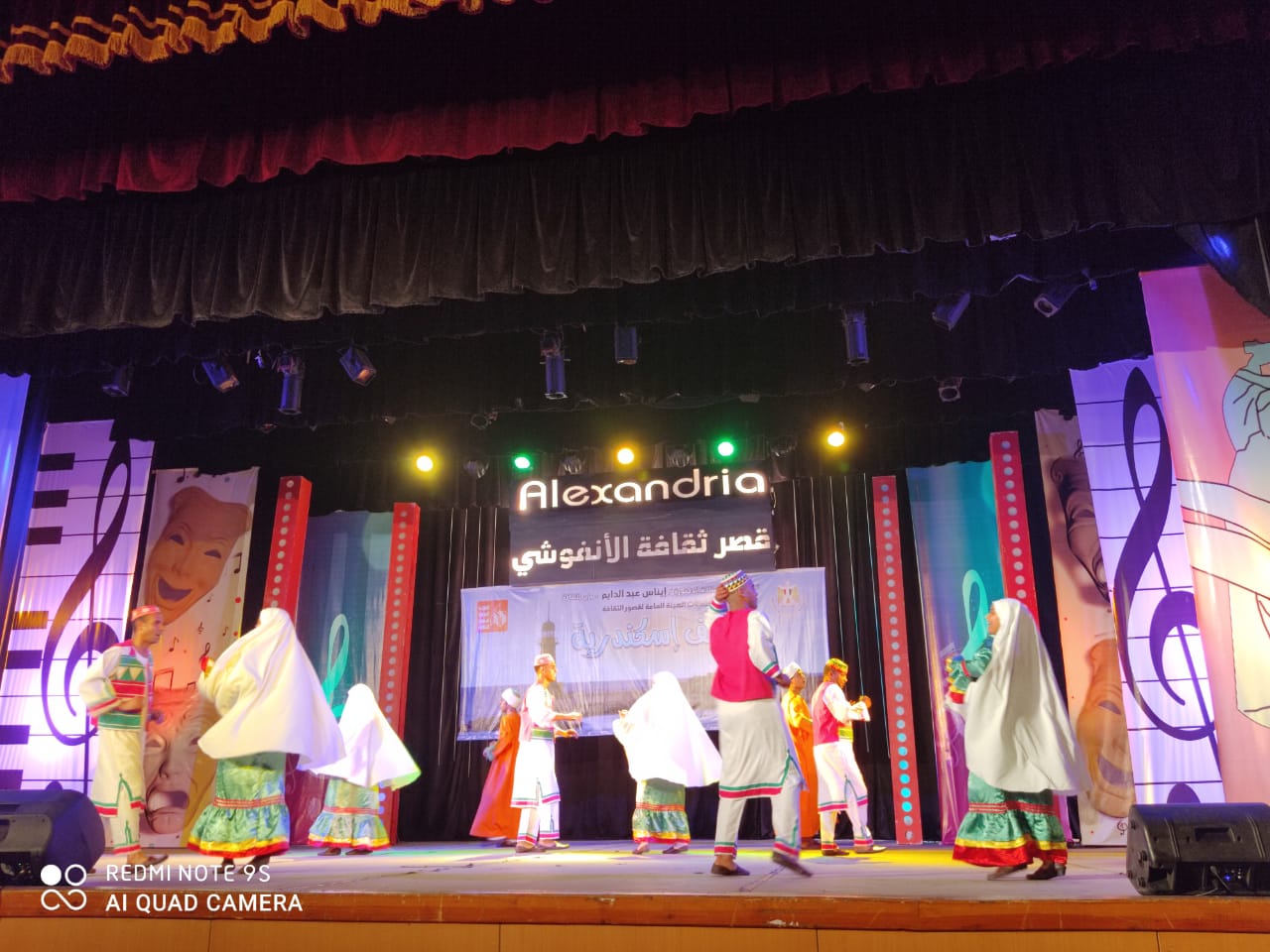 تواصلت فعاليات صيف إسكندرية الذي تنظمه الهيئة العامة لقصور الثقافة برئاسة الفنان هشام عطوة، وعلى مسرح قصر ثقافة الأنفوشي قدمت فرقة الوادى الجديد للفنون الشعبية رقصات فلكلورية معبرة عن البيئة من الوادي منها "نخل عالي، الكف" تدريب محمد عبد الله، كما قدمت فرقة أسوان رقصات من الفلكلور النوبي منها ا"لسوق، الزفة، الكف" تحت إشراف مدير الفرقة شعبان حسين وتدريب مدحت محرم، وعلي مسرح قصر ثقافة الشاطبي قدمت فرقة سوهاج للفنون الشعبية تابلوهات استعراضية متنوعة منها "الربابة والتحطيب والخلخال" تدريب محمد الرز.