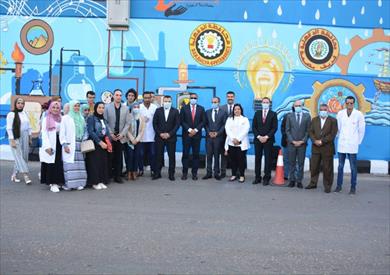 تفقد أيمن مختار محافظ الدقهلية، يرافقة هيثم الحاج علي، رئيس الهيئة العامة للكتاب، وهيثم الشيخ نائب المحافظ، وهدى بلاط مديرعام التنمية البشرية، جدارية المشاية السفلية أسفل كوبري المشاة بالمنصورة، والتى ينفذها فريق الشباب "بصمة" فى إطار مبادرة المحافظ للارتقاء بالمظهر الحضارى والجمالى للشوارع والميادين بالرسم على الحوائط والجدران بدعم من المجتمع المدنى بالدقهلية.