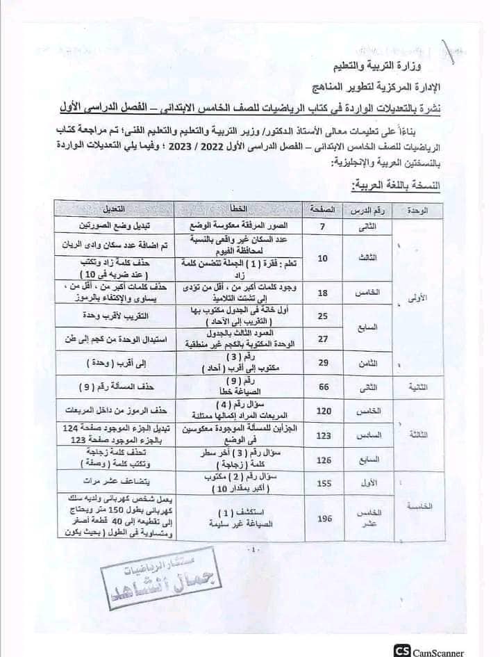 وأعلنت الإدارة المركزية لتطوير المناهج التعديلات على منهج الرياضيات للنسختين العربية والإنجليزية.