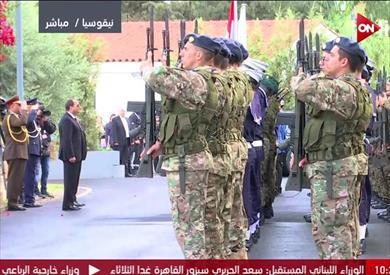 وكان في استقبال الرئيس «السيسي»، رئيس البرلمان القبرصي، ديمتري سولوريس.