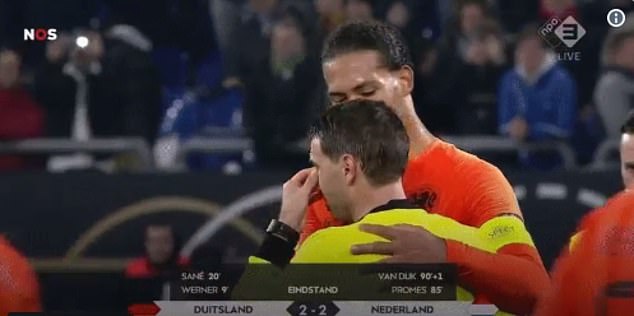 وكان فان دايك قد واسى الحكم الروماني بعد صافرة النهاية، التي أعلنت تأهل هولندا إلى الدور نصف النهائي لدوري الأمم الأوروبية.