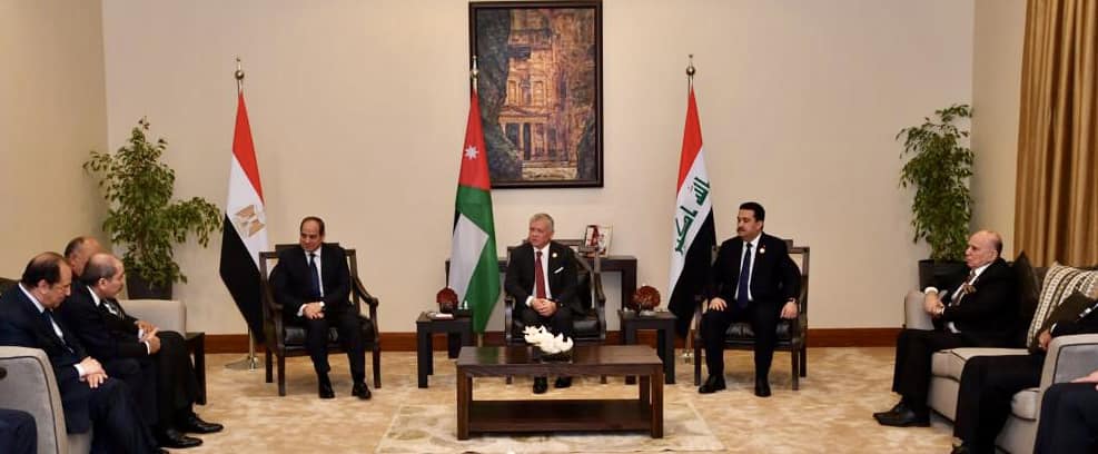 شارك الرئيس عبد الفتاح السيسي، اليوم الثلاثاء، في البحر الميت بالأردن، في قمة ثلاثية بين مصر والأردن والعراق، وذلك إلى جانب كلٍ من عاهل المملكة الأردنية الملك عبد الله الثاني بن الحسين، ورئيس الوزراء العراقي محمد شياع السوداني.