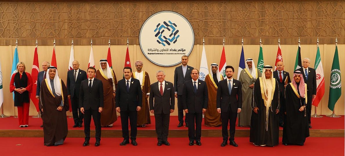 وانطلقت الثلاثاء، في البحر الميت، أعمال الدورة الثانية من مؤتمر بغداد للتعاون والشراكة، بدعوة من الملك عبدالله الثاني، وبالتنسيق مع الرئيس الفرنسي إيمانويل ماكرون، ورئيس مجلس الوزراء العراقي محمد شياع السوداني، وبحضورهما.