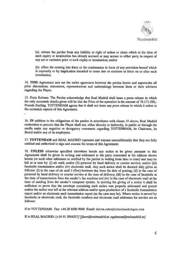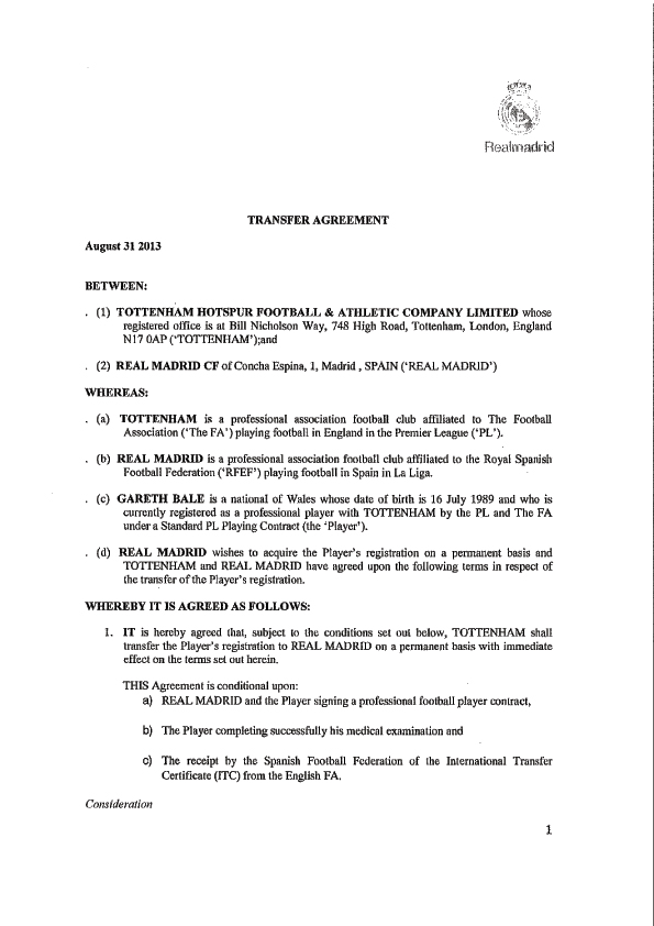 وقالت الصحيفة أن ريال مدريد وتوتنهام توصلا إلى اتفاق يقضى بأنتقال اللاعب بمقابل وصل إلى78.171.930 مليون جنيه استرلينى ، اى مايعادل 91 مليون يورو .