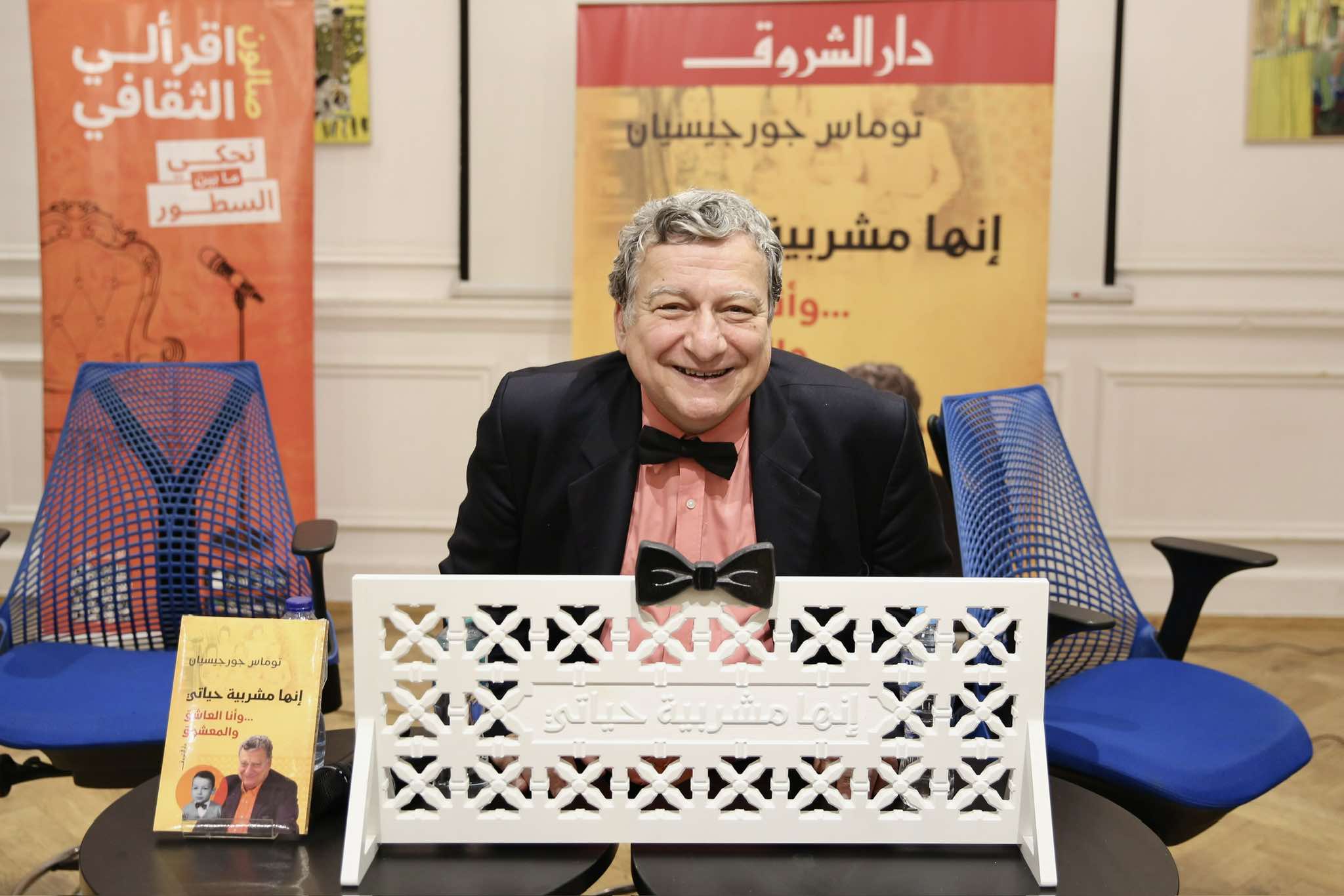 الكتاب عنوانه «إنها مشربية حياتى.. وأنا العاشق والمعشوق» صادر منذ أسابيع من دار الشروق المصرية فى حوالى مائتى صفحة من القطع الكبير. بعد مقدمة رائعة للدكتور محمد أبو الغار وأخرى لتوماس، تدخل إلى الفصول العشرة للكتاب. الفصول الأولى منها عن نشأته بين أمه وأبيه وزواجه من الأمريكية ليز التى التقاها فى مصر وتزوجها عام1987، وابنته وحياتهم بين مصر وأرمينيا وأمريكا. الفصول الأخرى تشكل حياته فى الصحافة فى مصر، ومراسلا وكاتبا من أمريكا التى استقر بها، وكيف لا يغيب عن مصر كتابة وحضورا.