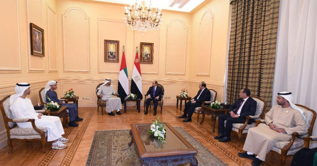 وصرح المتحدث الرسمي باسم رئاسة الجمهورية بأن الرئيس رحب بأخيه ولي عهد أبو ظبي في بلده الثاني مصر، مؤكداً سيادته اعتزاز مصر بالروابط التاريخية التي تجمع بين البلدين والشعبين الشقيقين، وحرص مصر على الاستمرار في تعزيز التعاون الثنائي مع الإمارات في مختلف المجالات، وتكثيف وتيرة انعقاد اللقاءات الثنائية بين كبار المسئولين من البلدين بصورة دورية للتنسيق الحثيث والمتبادل تجاه التطورات المتلاحقة التي يشهدها العالم والمنطقة.
