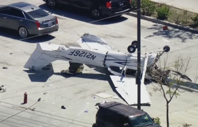 تحطمت طائرة صغيرة في موقف سيارات بجنوب كاليفورنيا يوم الاثنين، مما أسفر عن إصابة قائدها، وفقًا للسلطات الأمريكية.
