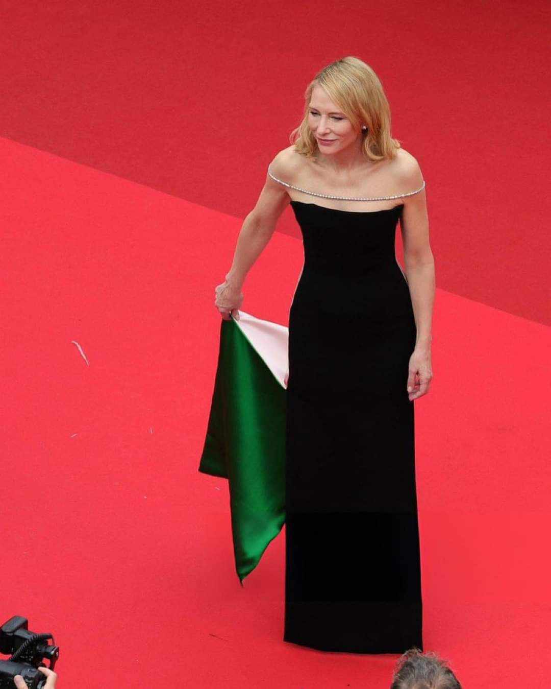 انتشرت صورة الممثلة الأسترالية كيت بلانشيت، على منصات التواصل الاجتماعي، بعد ظهورها على السجادة الحمراء في الدورة 77 لمهرجان كان السينمائي الدولي، مُرتدية فستان يضم ألوان العلم الفلسطيني، مما جعل الجمهور يُثني على تصرفها ويعتبرها تدعم القضية في واحد من أبرز الفعاليات السينمائية في العالم.