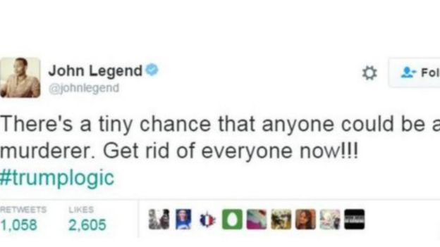 وقال في تعليق على تويتر: "هناك فرصة ضئيلة بأن كل شخص قد يكون قاتلا. (ولذا يجب) التخلص من الجميع الآن!!!"