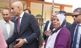 وبدأ جولته بمدرسة أسماء بنت أبي بكر الثانوية بنات، وحضور طابور الصباح وتحية علم مصر، والإذاعة المدرسية.