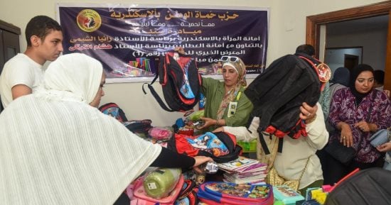 نظمت أمانة المرأة بحزب "حماة الوطن" في الإسكندرية، معرضا لتوزيع الملابس والأدوات والمستلزمات المدرسية "المجانية" على تلاميذ المدارس، بمقر دائرة العطارين، وفقًا لبيان صحفي، اليوم السبت.