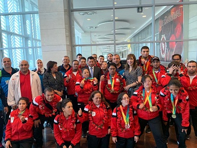 وكان وزير الشباب والرياضة فى مقدمة المستقبلين لجميع أعضاء البعثة المصرية فور وصولهم إلى مطار القاهرة الدولي قادمين من أستراليا عقب نهاية منافسات بطولة العالم للإعاقات الذهنية، وتحقيقهم لعدد 14 ميدالية متنوعة منقسمين إلى 8 ميداليات في ألعاب القوى بواقع 6 ذهب، و ميدالية فضية وميدالية برونزية، و4 ميداليات في تنس الطاولة بواقع ميداليتين فضية و ميداليتين برونزية، وميدالية فضية وأخرى برونزية في منافسات السباحة.