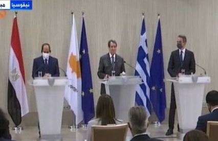 وقال السيسي، في مؤتمر صحفي مشترك مع نظيره القبرصي ورئيس الوزراء اليوناني، اليوم الأربعاء، إن ما تمثله آلية التعاون الثلاثي منذ تشدينها محفل استراتيجي لتبادل الرؤى بين الدول الثلاث، والارتقاء بها على مستوى الأصعدة المختلفة، وتوثيق المواقف حيال القضايا ذات الأهمية.