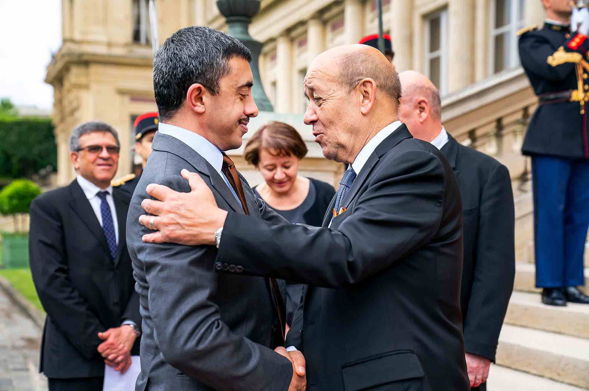 بحث وزير الخارجية والتعاون الدولي الإماراتي الشيخ عبدالله بن زايد آل نهيان، اليوم الأربعاء، مع وزير أوروبا والشئون الخارجية الفرنسي جان إيف لودريان في باريس سير العلاقات الثنائية المشتركة بين الإمارات وفرنسا والسبل الكفيلة بتعزيز أوجه التعاون بين البلدين في مختلف المجالات ومنها التجارية والدفاعية والأمنية والاقتصادية والتعليمية والثقافية والصحية والطاقة المتجددة.