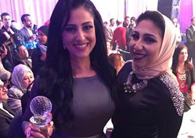 وحرصت النجمة الشابة على حضور الفنانة مي ناصر مصممة الفستان الذي لفت الأنظار إليها وهي تتسلم تكريمها عن دورها في مسلسل «ونوس» الذي عرض في رمضان الماضي.