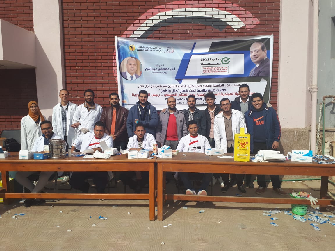 أكد الدكتور مصطفى عبد النبي، رئيس جامعة المنيا، أن الجامعة تشارك بقوة في حملة "100 مليون صحة" للقضاء على فيرس سي، والكشف عن الأمراض غير السارية، تفعيلاً لمبادرة السيد عبد الفتاح السيسي رئيس الجمهورية.