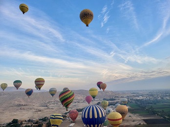 شهدت سماء محافظ الأقصر، اليوم الأحد، تحليق 73 رحلة بالون طائر على متنها 1800 سائح من جنسيات مختلفة؛ لمشاهدة الآثار والمعابد والوديان والنيل والمناظرالطبيعية الرائعة.