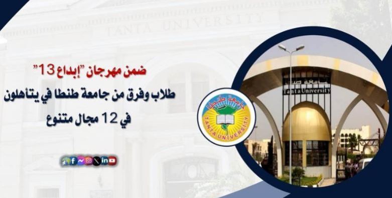 أعلن الدكتور محمد حسين القائم بعمل رئيس جامعة طنطا عن تأهل عدد من طلاب وفرق الجامعة للتصفيات النهائية في مهرجان "إبداع 13"، الذي يقام تحت رعاية فخامة الرئيس عبدالفتاح السيسي رئيس الجمهورية، لطلاب الجامعات والمعاهد والأكاديميات الحكومية والخاصة، بهدف تنمية المواهب الشبابية في مجالات الأدب، الفنون، والابتكارات العلمية والاجتماعية.