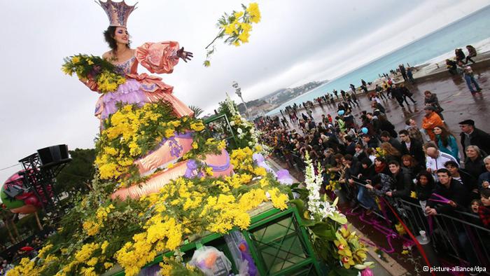 تفتتح "ملكة المهرجان" معركة "إلقاء الزهور على الجمهور"، التي ينتظرها عشرات الآلاف من الزوار من كل أنحاء العالم ليلتقطوا زهور الميموسا. وبهذا يبدأ مهرجان نيس، أحد أهم المناسبات الشتوية التي تقام على الريفييرا الفرنسية وهو أيضاً من أكبر المهرجانات في العالم، فعلى مدى أسبوعين تشهد المدينة الواقعة على البحر الأبيض المتوسط مجموعة منوعة من العروض البراقة.