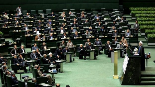 الرئيس الإيراني حسن روحاني يلقي كلمة في البرلمان