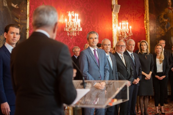 وخلال مراسم أداء اليمين، حث رئيس النمسا ألكساندر فان دير بيل الحكومة على اتخاذ إجراءات لبناء الثقة والتوسط إلى حلول وسط مع البرلمان.